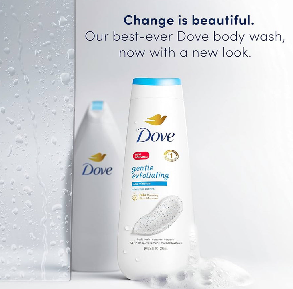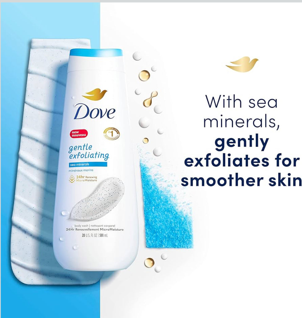 - 24HR RENEWING MICROMOISTURE: Dove Gentle Exfoliating Body Wash, with sea minerals, nourishes and revives skin, leaving it renewed and healthy-looking for 24 hours